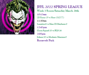 JFFL 2022 Spring League Week 3 Schedule and Scores