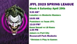 JFFL 2023 Spring League Week 4 Scores and Schedule